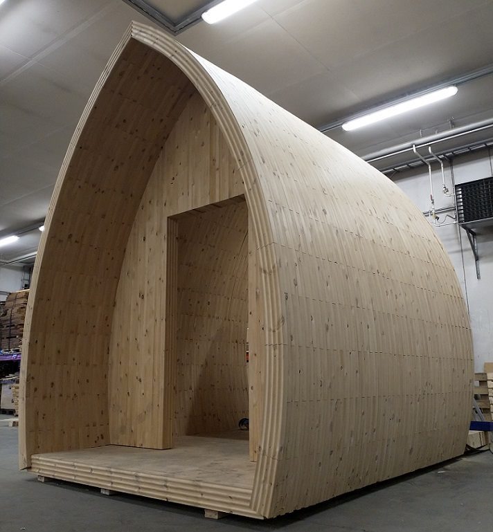 Massiivipuinen liimaton rakennustekniikka - Eri puulajeille sopiva skaalautuva rakenne - Mahdollistaa lujat kaarevat muodot - Matalat tuotantokustannukset - Helppo valmistus, kuljetus ja asennus